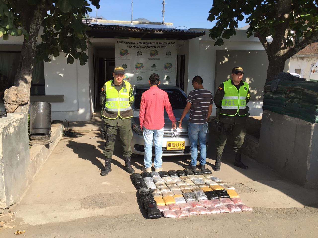 En el municipio de Taminango, fue requerido un vehículo tipo automóvil que al observar el puesto de control evade el requerimiento y emprende la huida; de forma inmediata y tras una oportuna reacción por parte de los uniformados, se inicia la persecución siendo interceptado metros más adelante, en el registro minucioso del vehículo se observa que debajo del bomper trasero y del panel de control, unos paquetes envueltos en plástico de diversos colores los cuales contienen una sustancia que al realizarle la prueba de identificación preliminar homologada (PIPH) da positivo para cannabis y sus derivados ‘marihuana’ los cuales fueron avaluados en 30 millones de pesos aproximadamente. En tal sentido se produce la captura de dos personas; siendo puestas junto al vehículo y la sustancia incautada a disposición de la autoridad competente por el delito de tráfico fabricación y porte de estupefacientes.