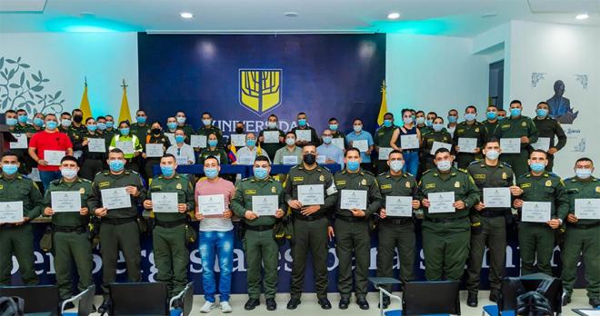 50 uniformados fortalecieron sus competencias para el desempeño en la profesión de policía; con el propósito de fortalecer las competencias policiales y ampliar los conocimientos en materia de Derechos Humanos y Derecho Internacional Humanitario, la Policía Metropolitana en coordinación con la Universidad Sergio Arboleda, certificaron a 50 uniformados adscritos a esta unidad policial.