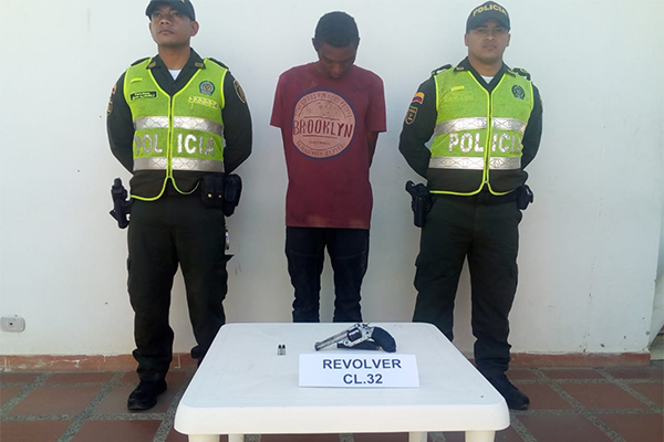 Gracias al fortalecimiento de las Redes de Participación Cívica en la zona de los Montes de María, se recibió información oportuna sobre la presencia de un sujeto que en actitud sospechosa merodeaba el barrio Diógenes Arrieta en el municipio de San Juan Nepomuceno, la patrulla del Modelo Nacional de Vigilancia Comunitaria por Cuadrantes que se acercaba al lugar, observó cuando este sujeto emprendió la huida e ingreso violentamente a una de las viviendas del sector, en su afán de evadir el cerco policial escalo por los techos de las casas vecinas, pero gracias al plan candado activado por la Policía Nacional se logra capturar a esta persona una cuadra más adelante, a quien en se le halla en su poder un revolver calibre 32 con dos cartuchos, sin el permiso para porte.