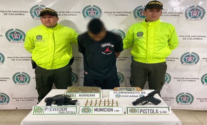 Durante el operativo los uniformados realizaron la incautación de un arma de fuego calibre 9 milímetros, 23 cartuchos, dos proveedores, 500 dosis de marihuana y un kilo de clorhidrato de cocaína, alias “Pastor” fue dejado a disposición de la Fiscalia General de la Nación.