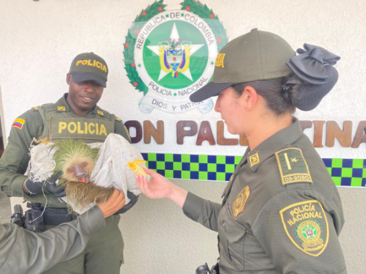 La Policía Nacional en Caldas, en su compromiso de protección de los recursos naturales y el medio ambiente, con la colaboración de la ciudadanía, pusieron a salvo a un oso perezoso.