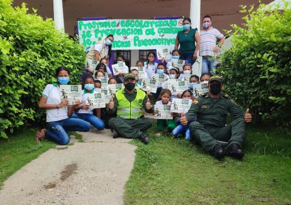 Con gran éxito finalizaron las actividades del “Programa Escolarizado de Prevención al Consumo de Drogas” que realizó la Policía en Bolívar y en el que participaron 292 niños, niñas y adolescentes de la institución educativa Cooperativo sede primaria, bachillerato urbano y rural del municipio de Talaigua Nuevo.