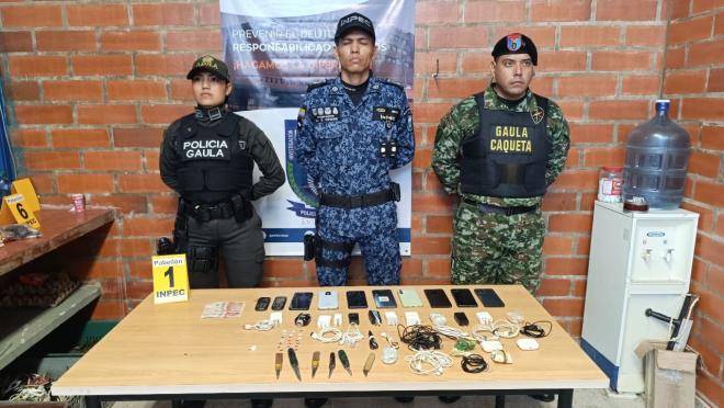 La Policía Nacional, a través del GAULA, en coordinación con el GAULA Militar y el INPEC, ha demostrado una vez más la efectividad en la lucha contra la extorsión en Caquetá. En una intervención estratégica en el Centro Penitenciario "Las Heliconias", en los pabellones 1 y 6 que albergan a 390 personas privadas de la libertad por la comisión de diversos delitos, se logró la incautación de elementos tecnológicos utilizados para coordinar actividades delictivas.