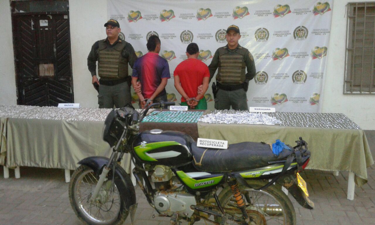 A estos sujetos al momento de practicarles un registro personal se les halló en su poder 595 gramos de bazuco, 166 gramos de clorhidrato de cocaína y 1.065 gramos de marihuana. El estupefaciente incautado habría sido avaluado en $10.000.000 millones de pesos.