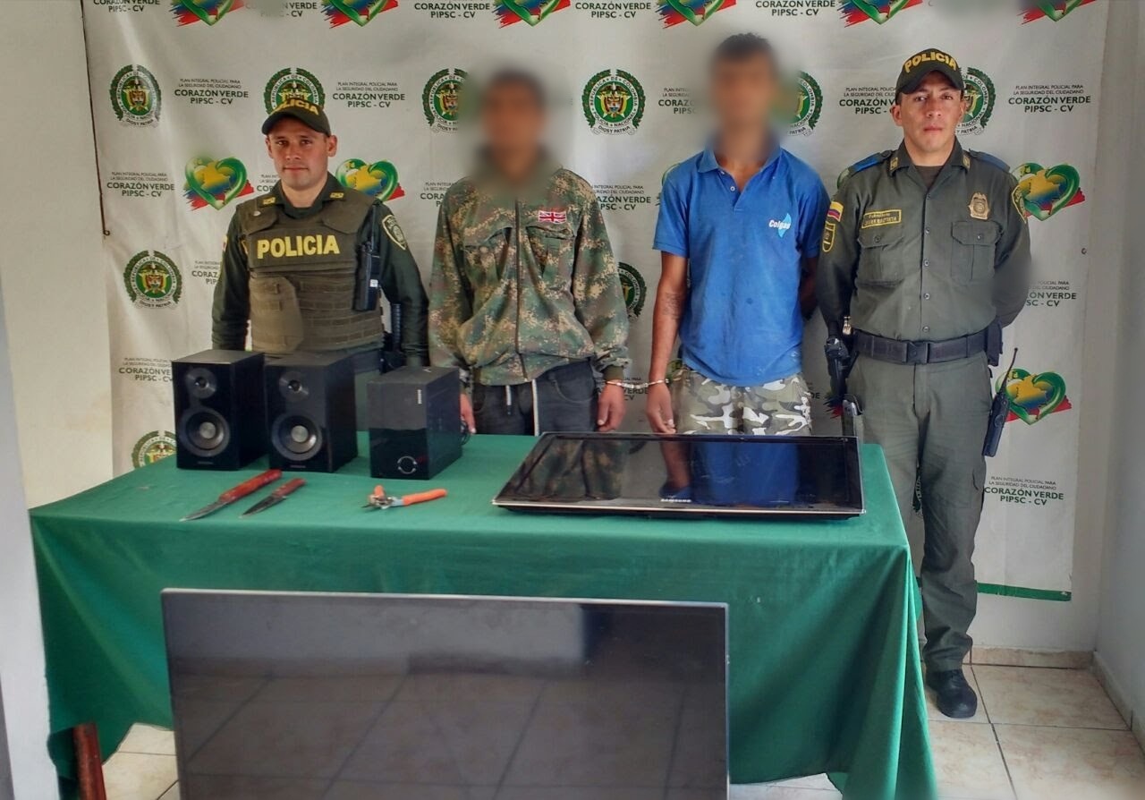 La Policía capturo a dos hombres en flagrancia después de ser sorprendidos, llevando consigo electrodomésticos que minutos antes habían hurtado de una finca en zona rural del municipio de Anserma.