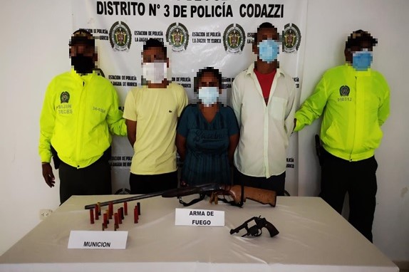Dentro de las labores de indagación estas personas generaban un índice de criminalidad al emplear armas de fuego para otras actividades delictivas, afectando los expendios y mitos de inseguridad en esta localidad, incautando un revolver calibre 38 con dos cartuchos, una escopeta calibre 16 con catorce cartuchos.