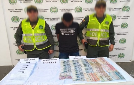 La acción policial se llevó a cabo en desarrollo de planes de registro y control adelantados en el barrio San Bernardo de Montelíbano, al sujeto se le incautó dinero en efectivo, al parecer producto de la intimidación a los habitantes de la localidad en mención, posteriormente fue dejado a disposición de la Fiscalía 19 de Montelíbano por el delito de fabricación, tráfico, porte o tenencia de armas de fuego o municiones.