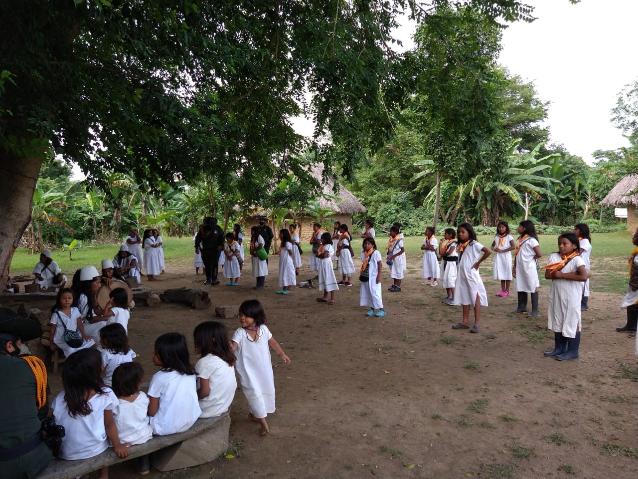 En un gesto de solidaridad y apoyo a las comunidades indígenas, quienes se han visto afectadas por el aislamiento preventivo contra el COVID 19, uniformados llegan nuevamente hasta sus asentamientos en el parque Tayrona, con ayudas humanitarias provenientes de la ciudad de Bogotá, consistentes está vez, en 250 almuerzos, 100 kits estudiantiles, 80 mercados, 86 pacas de agua, bicicletas para los niños y niñas de la comunidad.