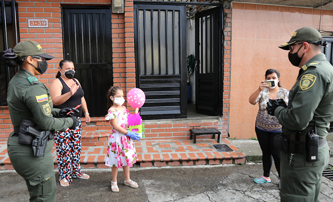 El primero en recibir esta felicidad fue el niño Juan Pablo Domínguez Obando de 5 años de edad del barrio La Playa del municipio de Anserma, quien a lo lejos en su casa escuchaba la sirena de Policía Nacional y a los vecinos gritando su nombre, asombrado y al asomarse a la ventaba escucha el altavoz de la patrulla de la Policía mencionado su nombre y observa a dos uniformados con un pastel de cumpleaños y un ramillete de globos, pero fue más la emoción y la alegría que reflejo el menor cuando se escuchó a través del altavoz de la patrulla, “la canción de cumpleaños y una voz que le decía Juan pablo la policía nacional hoy quiere celebrarte tu cumpleaños número 5, feliz cumpleaños” las gestos y expresiones de alegría se pudieron notar en el niño y su familia quienes agradecieron a los uniformados por haberle cumplido el sueño a su hijo y celebrarle su cumpleaños en medio de las medidas adoptadas para prevenir la propagación del Covid-19, fue una celebración con la ausencia de sus familiares y amiguitos, pero con las personas a quien admira y ve como sus héroes, los policías.