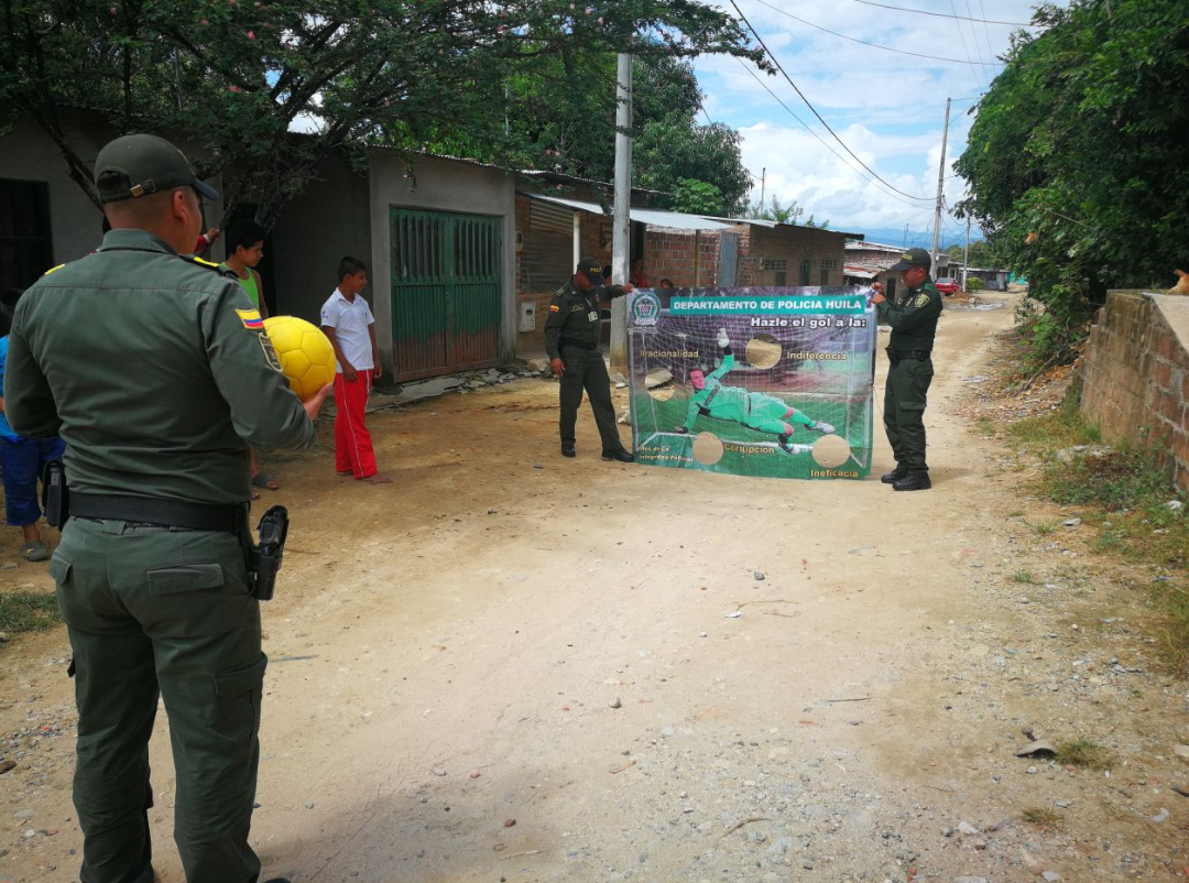 En aras de fortalecer el vínculo de confianza con los ciudadanos, el grupo de prevención y educación ciudadana del Departamento de Policía Huila, llegó hasta el barrio Villa Gloria del municipio de Campoalegre con la campaña “Hazle un gol a la delincuencia” contra las lesiones personales, homicidio y violencia intrafamiliar.