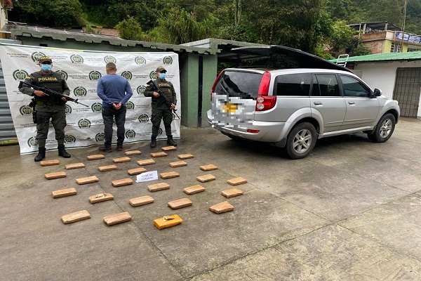 Mediante actividades de registro y solicitud de antecedentes en puesto de control, adelantadas por uniformados adscritos al Modelo Nacional de Vigilancia Comunitaria por Cuadrantes (MNVCC), se logra la captura de un ciudadano y la incautación de 37 kilos de alcaloides.