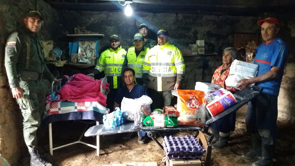 Por otro lado, el personal uniformado de la Estación se desplazó hasta la vereda Chirristes, donde realizaron una jornada de limpieza y mantenimiento del inmueble, construyeron una letrina, también se logró coordinar con personal profesional de la E.S.E Santiago Apóstol de este municipio, para que se les realizara una valoración médica, finalmente se le hizo entrega de un mercado, elementos de aseo, pañales desechables y cremas hidratantes necesarias para tratar las quemaduras de la espalda de la señora María Socorro quien por el estado de inmovilidad presenta llagas en su piel.