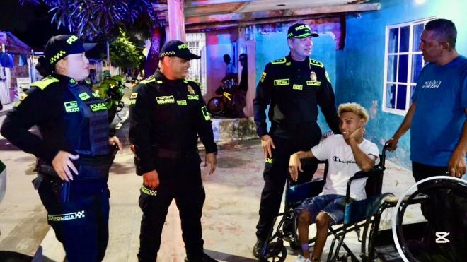 La Policía Nacional en Barranquilla, a través del Grupo de Policía Comunitaria, realizó la entrega de una silla de ruedas a un joven en condición de discapacidad por parálisis cerebral, en el barrio Las Malvinas.