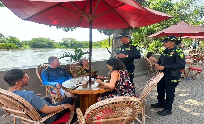 Con la presencia policial, los turistas no solo se sienten seguros, sino también bienvenidos, como si Mompox les dijera: “estás en casa”. “Estamos aquí no solo para vigilar, sino para acompañar”, afirma un oficial mientras reparte volantes de prevención frente al templo de Santa Bárbara. Su voz, cargada de convicción, se mezcla con el incienso y el murmullo de los fieles. Pero sí, en Mompox, hasta la seguridad se viste de respeto por lo sagrado.