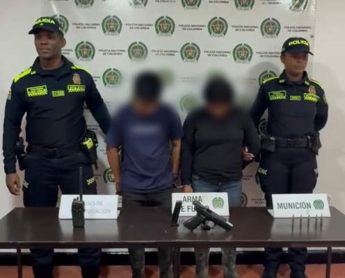 Gracias a la valerosa acción de dos de nuestros uniformados, se logró la captura de un hombre y una mujer, como la incautación de un arma de fuego, dos minas antipersonas y un radio satelital de comunicaciones; logrando con esto salvaguardar la vida del personal que se encontraban en la Subestación de Policía El Muro, ubicada en zona rural del municipio de Calima Darién (Valle).