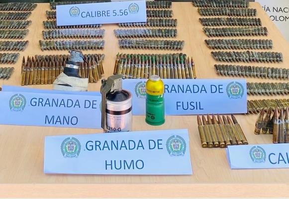 El comandante de la Policía Valle, coronel Giovanni Cristancho Zambrano, explicó a la opinión pública que el arsenal decomisado, estaba formado por gran cantidad de munición para fusil para un total de 877 cartuchos de diferentes calibres, siendo (840) cartuchos 5.65mm, (37) cartuchos 7.62mm, 01 Granda de mortero, 01 granada de humo y 01 granada de mano de uso exclusivo de las Fuerzas Militares.