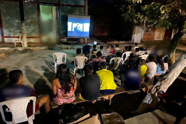 La actividad denominada cine al parque se realiza con el fin de estrechar lazos de amistad y lograr un acercamiento con esta comunidad afectada por la violencia; una noble iniciativa que convocó a más de 60 personas y ya se ha convertido en el plan favorito de la comunidad desde la llegada del capitán Toscano pues es quien lidera este tipo de actividades recreativas una vez al mes para esta zona del Catatumbo.