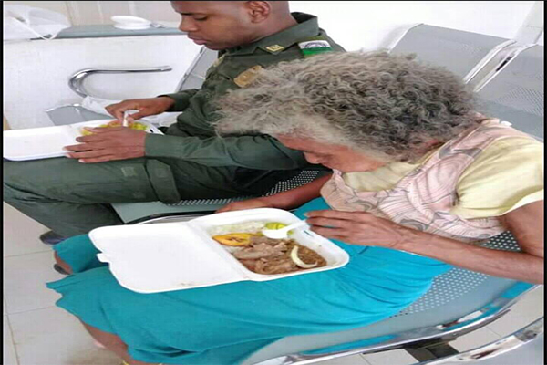 Al llegar al centro asistencial le realizaron los exámenes pertinentes y una radiografía para confirmar el diagnóstico, que según los galenos era una fractura. Mientras esperaban los resultados de los análisis comparte un almuerzo en la sala de espera. Seguidamente el señor patrullero en su vocación de servir le realiza a “chávela” manicure, pedicure, con el fin de mejorar su higiene.