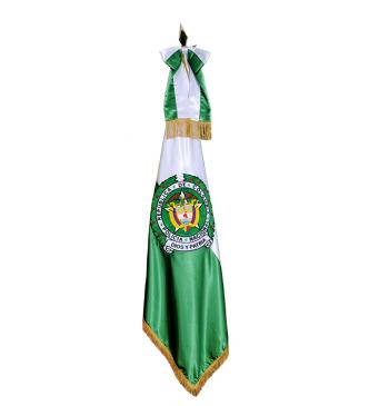 Dividida en dos franjas horizontales de igual proporción, una de color blanco que es fuente de energía, pureza y paz. Otra de color verde, significa esperanza, fuerza, longevidad e inmortalidad. Simboliza el compromiso de la Institución con los propósitos de reestablecer y mantener la autoridad legítima del Estado y la paz en todo el territorio nacional.