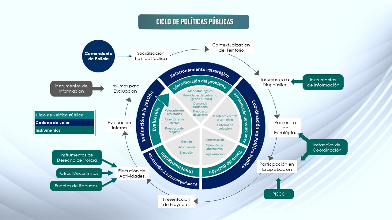 Es la encargada de diseñar orientar los lineamientos de la participación institucional en el ciclo de política pública y gestión territorial de la convivencia y seguridad ciudadana, para la articulación interinstitucional, el fortalecimiento y la complementariedad con el servicio de policía..