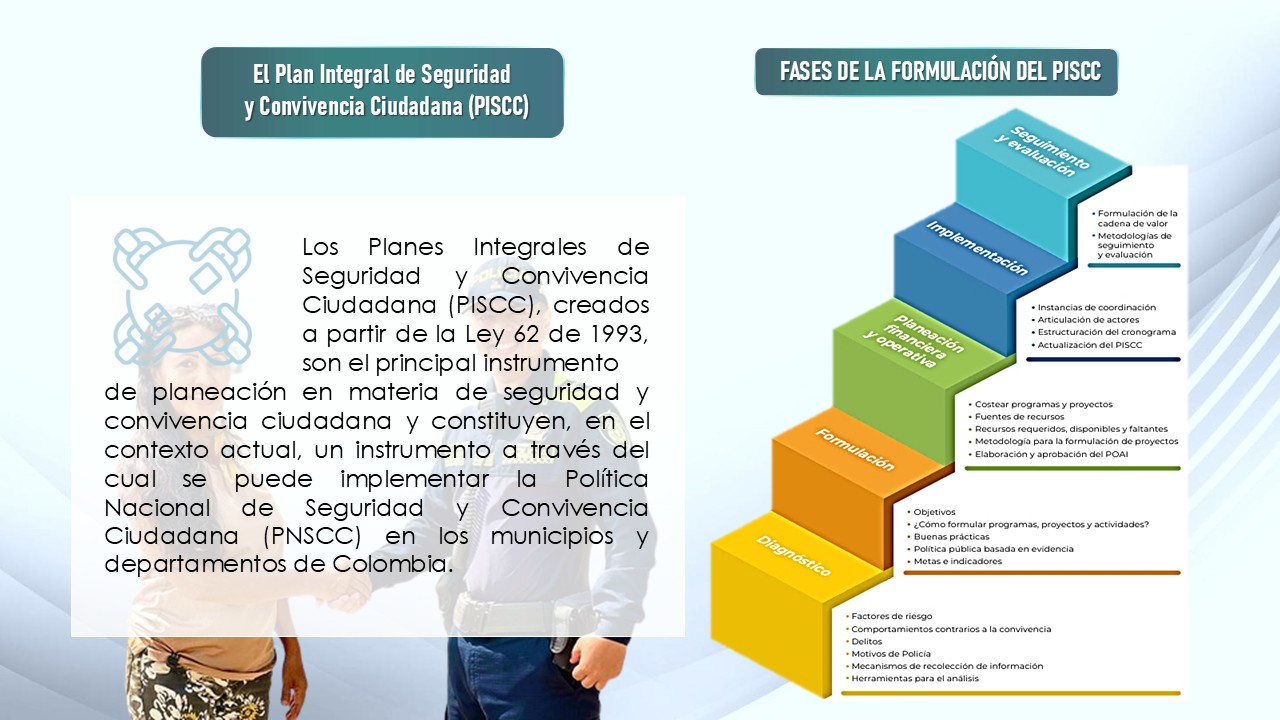 - Es convocado y presidido por el gobernador o el alcalde, siendo una de las instituciones integrantes la Policía Nacional, de acuerdo con la temática.