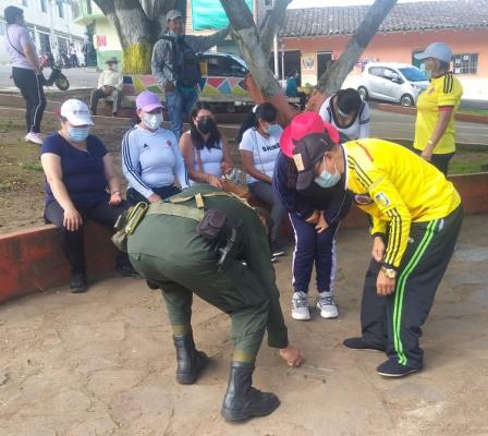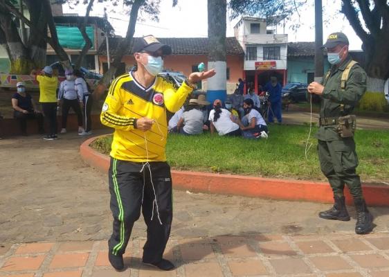 En esta oportunidad, uniformados de la Estación de Policía Consacá, acompañaron a los docentes que participaban de una jornada de manifestación con encuentros de juegos autóctonos como el trompo, la rayuela, el balero, aros y el yermis, donde jóvenes, docentes y policías le apuestan al respeto y tolerancia.