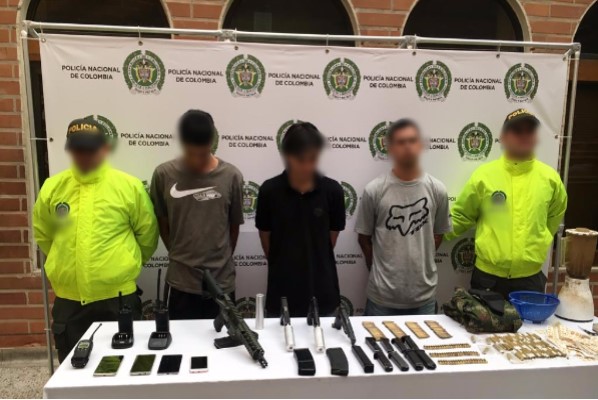 En desarrollo de la tercera fase del plan choque “el que la hace la paga”, construyendo seguridad, la Policía Nacional de Colombia, con el apoyo de la Fiscalía General de la Nación, logró en las últimas horas las capturas de tres personas pertenecientes al grupo de delincuencia común organizado GDCO “el mesa” del municipio de Bello, la incautación de considerable material bélico, además de la aprehensión en otro procedimiento de dos adolescentes en poder de armas de fuego.