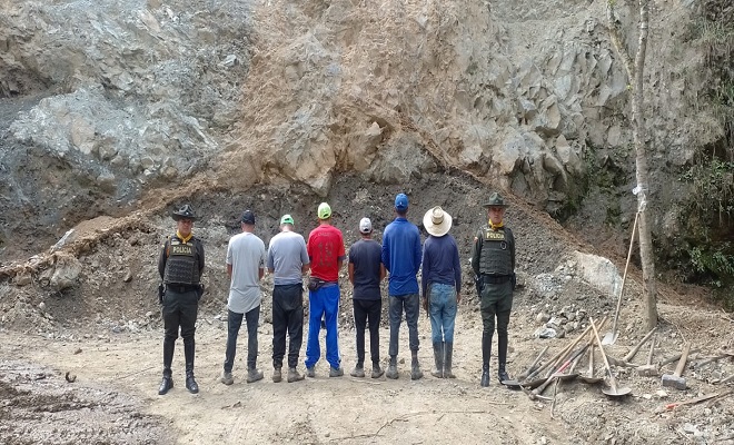 En una operación conjunta, la Seccional de Carabineros y Protección Ambiental, en coordinación con la Corporación Autónoma Regional del Quindío, lograron la captura de seis personas en la vereda Las Brisas del municipio de Córdoba, por el delito de explotación ilícita de yacimientos mineros u otros materiales.