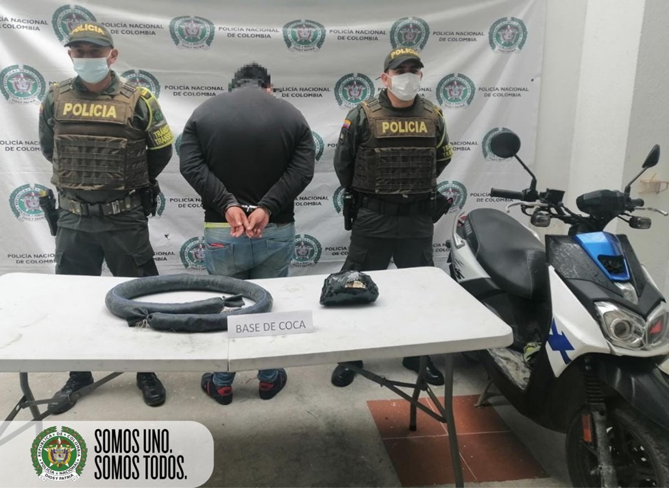 El capturado de 24 años, fue sindicado por el delito de Tráfico, fabricación o porte de estupefacientes e inmovilizada la motocicleta y puestos a disposición de autoridad competente.