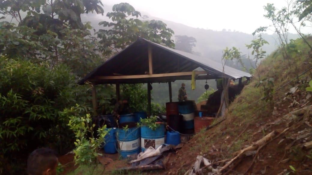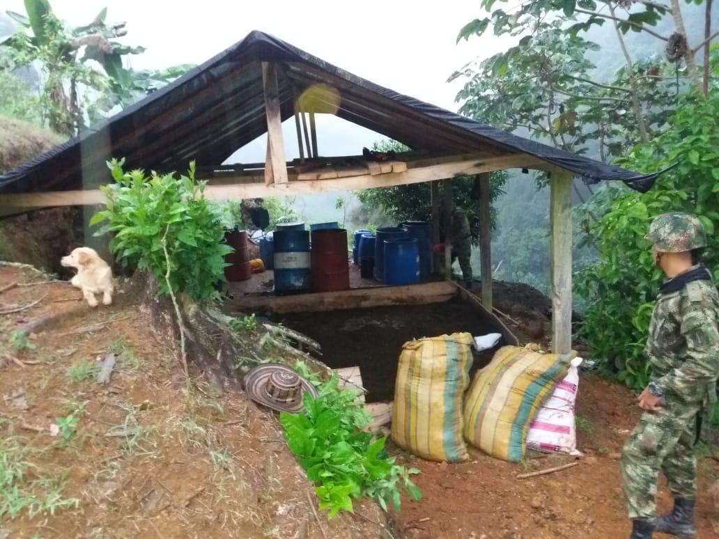 En desarrollo de la estrategia, ordenada por el señor presidente de la República, doctor Iván Duque, la Dirección de Antinarcóticos en coordinación con el Ejército Nacional desmantela cuatro laboratorios de base de cocaína en el municipio de Antioquia.