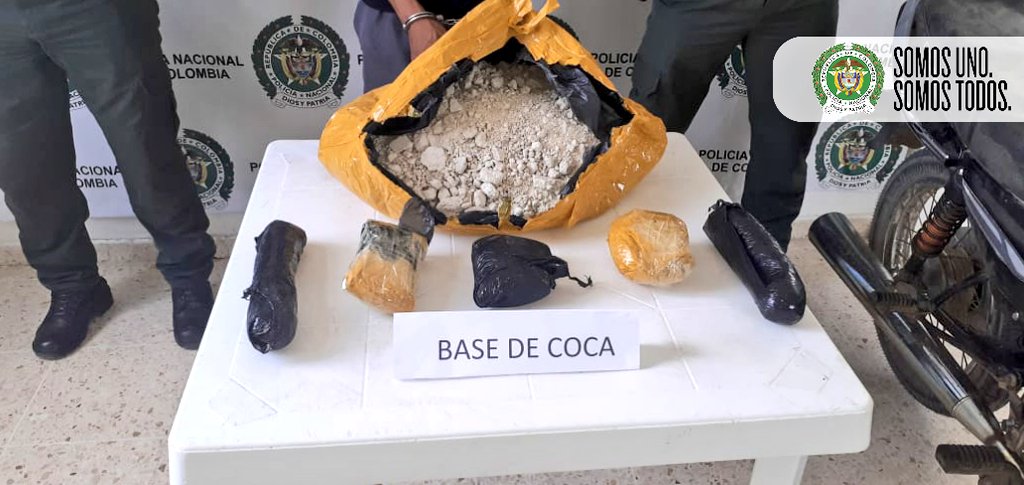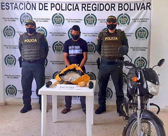 En el municipio de Regidor, al sur del Departamento de Bolívar, la Policía Nacional, capturo a una persona, incauto 12 kilos de base de coca en roca e inmovilizo una motocicleta, como resultado de las acciones operacionales que la institución viene adelantando en el territorio, en el marco del plan “Todos contra el microtráfico”