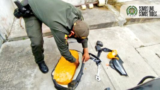 Cuando los uniformados adscritos a la estación de dicho municipio, adelantaban un puesto de control sobre la vía que de regidor conduce a rio viejo, dieron la orden de pare a un sujeto que se movilizaba en una motocicleta, ciudadano que despertó las sospechas de los policías, al observar que el cojín de la moto presentaba alteraciones, y no podían quitarlo con facilidad.