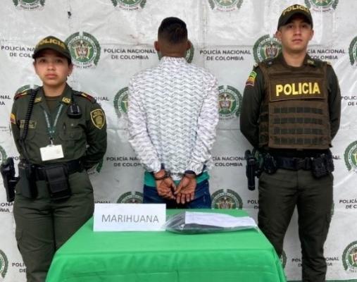 Es así como sin perderlo de vista es interceptado metros más adelante y al realizar las verificaciones, le es hallado en su poder una bolsa plástica negra y en su interior 300 gramos de marihuana.