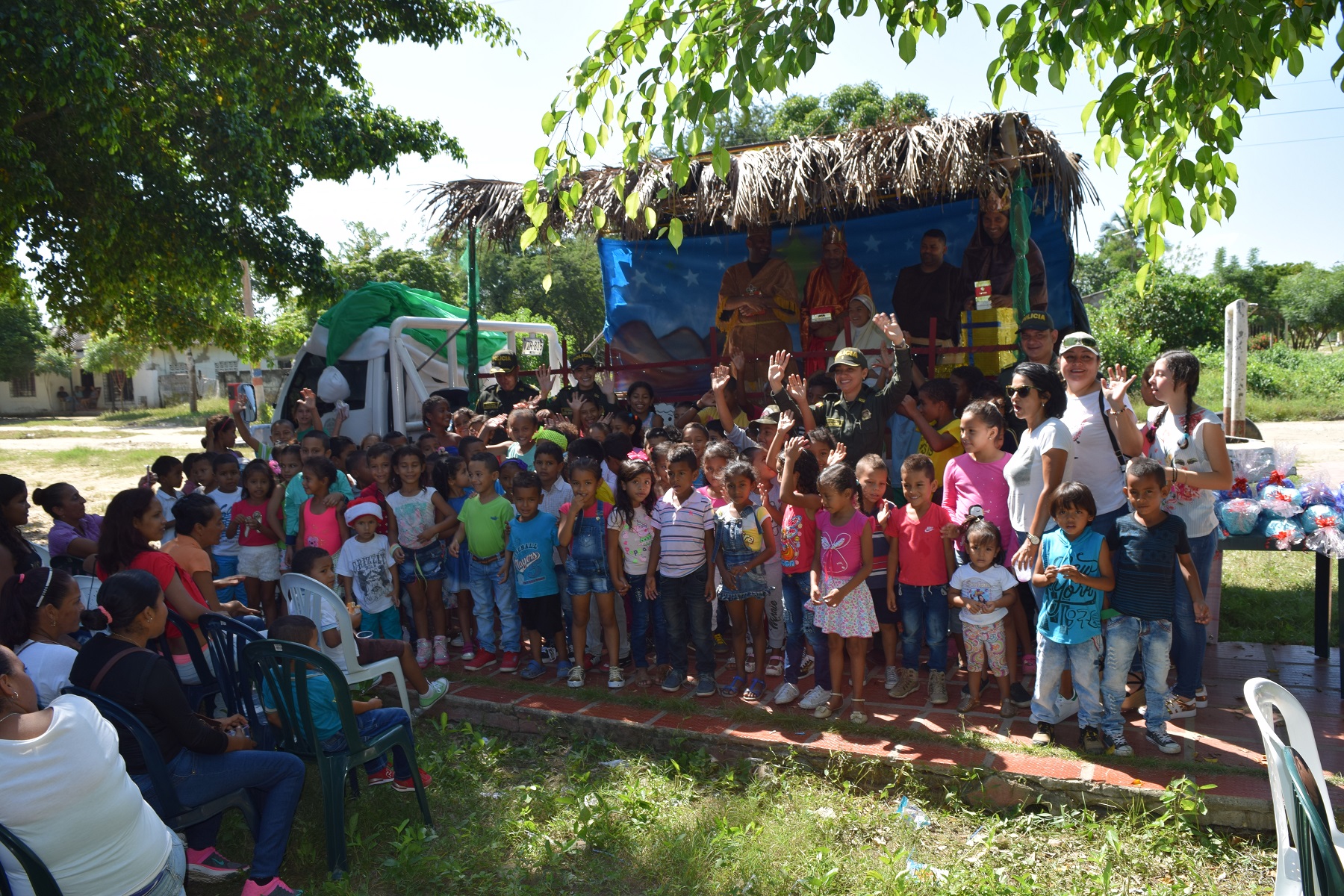 Una vez más el pesebre móvil de la Policía Nacional recorre los corregimientos y municipios del Atlántico llevando alegría, diversión, esperanza y por supuesto regalos a los niños.