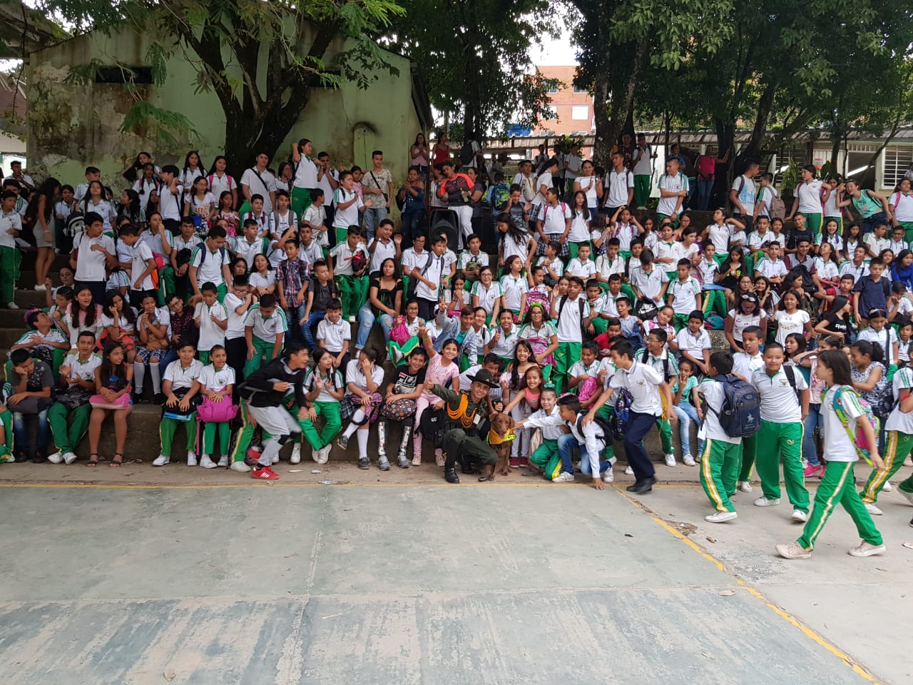 Uniformados del grupo de carabineros y guías caninos adscritos a la Policía Metropolitana de Ibagué, realizaron una jornada de sensibilización y recreación, con el escuadrón de relaciones públicas y show canino a los estudiantes del plantel educativo.