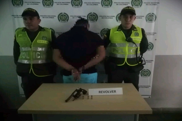Continuando con la ofensiva permanente contra los delitos que afectan la vida humana, el departamento de Policía Tolima se permite informar que siendo aproximadamente las 03:30 de la mañana, momentos en que personal del cuadrante realizaba patrullaje de rutina por la carrera 7 barrio san Rafael del municipio del Espinal, se logro la captura en flagrancia de un hombre de 31 años conocido como ‘Machaca’, el cual al momento de realizarle registro a personas en la pretina del pantalón se le hallo en su poder 01 arma de fuego, tipo revolver, calibre 38 milímetros, con 01 un cartucho para el mismo y 02 cartuchos ya percutidos.