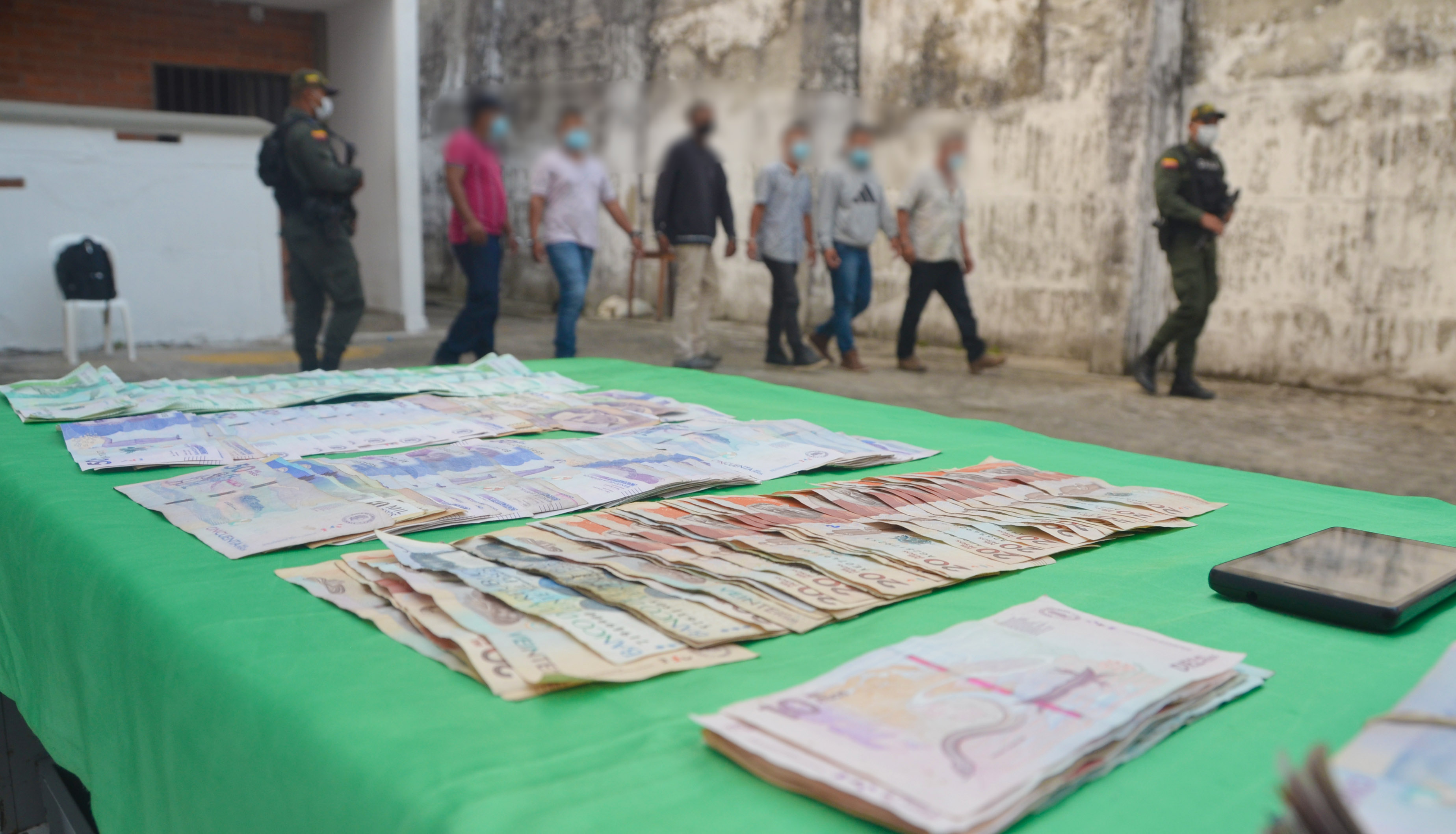 Tras varios meses de investigación y seguimiento, en el marco de la Operación ´Hércules´, se logra desmantelar este grupo delincuencial, llevando a cabo la materialización de 09 diligencias de registro y allanamientos y la captura de estos hombres. Además, como resultados operativos se incautaron: 08 equipos móviles, 01 motocicleta y $18.456.000 mil pesos en efectivo.