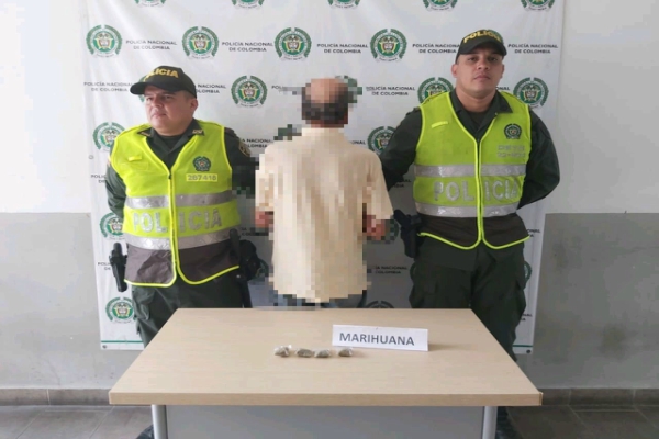 Continuando con los diferentes operativos contra la droga y el delito, el departamento de Policía Tolima se permite informar que siendo aproximadamente las 3:00 de la tarde, momentos en que personal del cuadrante realizaba patrullaje de rutina por la trasversal 4 con carrera 13 barrio nacional del municipio de Espinal, logran la captura en flagrancia de un sujeto de 68 años de edad, a quien mediante registro a personas se le hallo en su poder 50.5 gramos de marihuana equivalentes a cerca de 80 dosis.