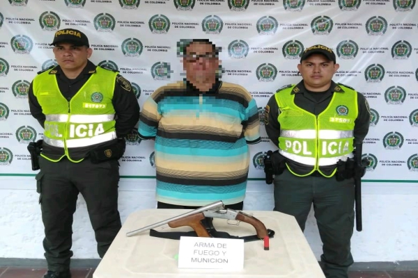 Continuando con la ofensiva permanente contra los delitos que afectan la vida humana, el departamento de Policía Tolima se permite informar que siendo aproximadamente las 4:00 de la tarde, momentos en que personal del cuadrante realizaba patrullaje de rutina por la vereda la sierra jurisdicción del municipio de Lérida, se logró la captura en flagrancia de un hombre de 46 años de edad, el cual al momento de realizarle registro a personas se le hallo en su poder un arma de fuego, tipo escopeta niquelada, calibre 16 milímetros, con un cartucho para la misma, sin permiso para porte o tenencia.