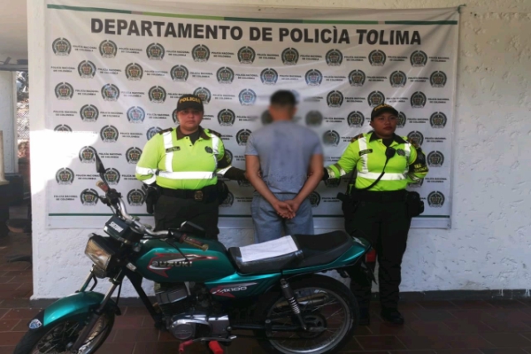 En desarrollo a los diferentes actividades operativas realizadas en las vías del departamento, la Policía Tolima se permite informar que momentos en que personal de la seccional de tránsito y transporte Tolima realizaban patrullaje de rutina, en la calle 7, barrio centro del municipio de LERIDA se logró la captura en flagrancia de un hombre de 22 años de edad, quien se movilizaba en una motocicleta, de mediano cilindraje, avaluada en $3.000.000, donde al solicitarle antecedentes al vehículo, este presenta solicitud por la fiscalía 70 local de Fresno por el delito de hurto,