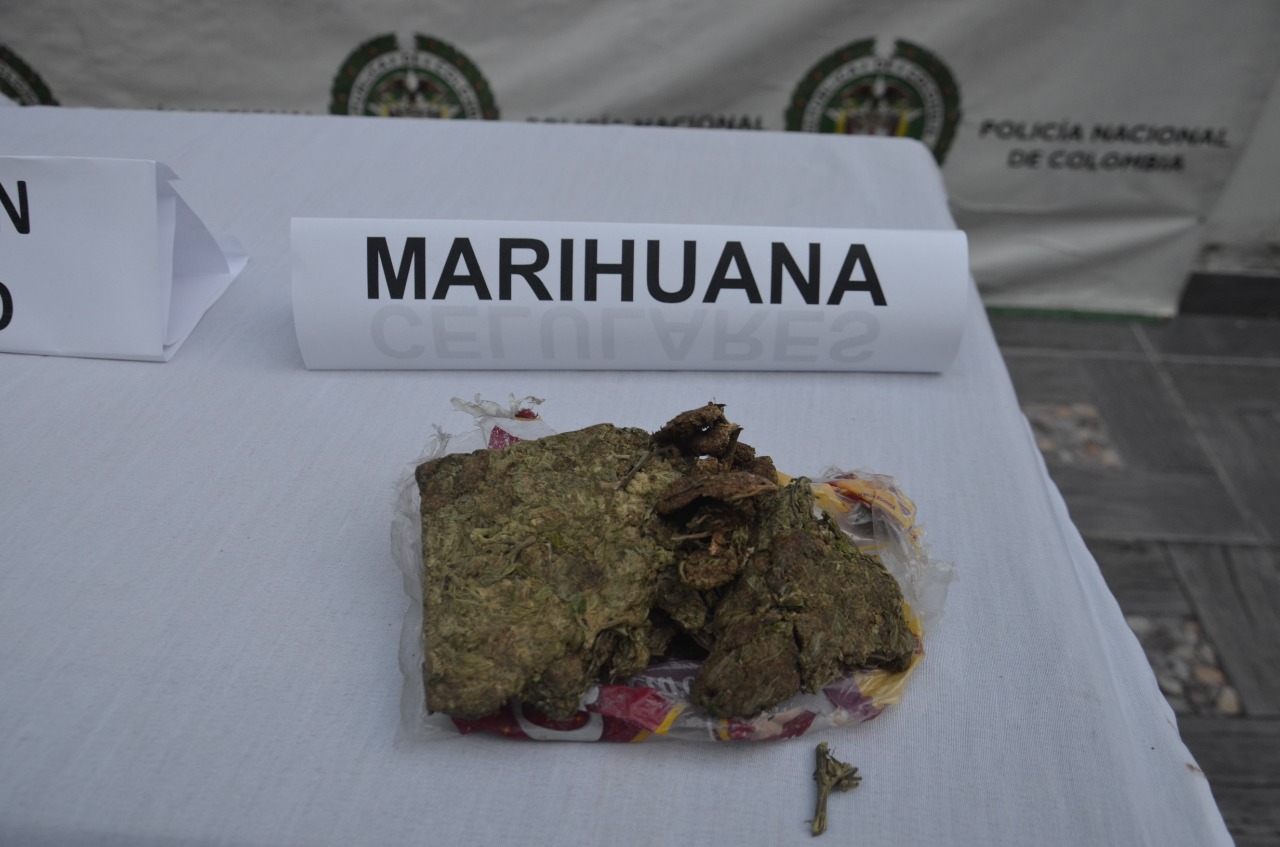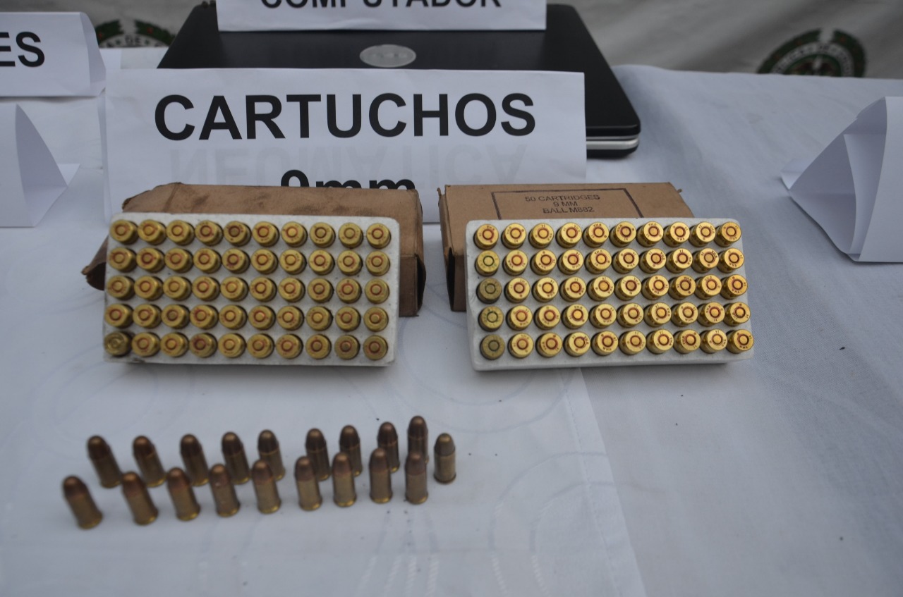 100 cartuchos calibre 9 mm, 22 cartuchos calibre 7.65 mm, 01 arma de fuego tipo pistola marca CZ calibre 7.65 mm, 01 arma de fuego tipo revolver sin marca calibre 38 mm, 01 arma de fuego artesanal tipo pistola marca Smith and Watson calibre 9mm, 01 arma neumática tipo pistola marca Sig Sauer,06 proveedores para pistola, 100 dosis de marihuana. 02 chasis de motocicletas y diferentes partes de la misma, 02 celulares gama media, 01 computador tipo portátil marca DELL, 1.500.000 mil pesos MCTE.