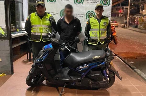 Con las características de la motocicleta, una patrulla de policía adscrita al CAI Guabinal, logró observar que un sujeto llevaba la motocicleta "taconeándola", por lo que de inmediato lo abordan y logran capturarlo en flagrancia por el delito de hurto.