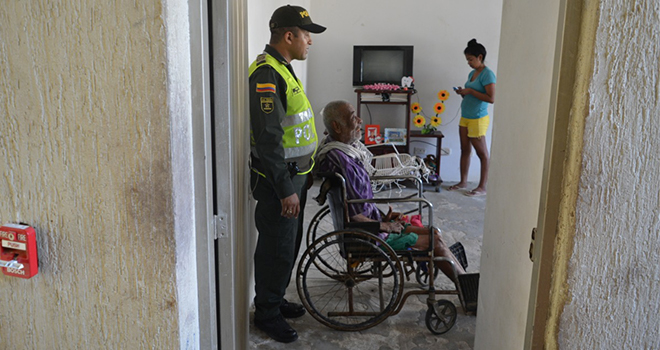 En desarrollo del plan de choque, “el que la hace la paga, construyendo seguridad”, en su tercera, uniformados adscritos al Área de Prevención y Educación Ciudadana entregaron una silla de ruedas a un ciudadano para facilitarle a sus familiares el desplazamiento dentro y fuera de su vivienda ubicada en la urbanización La Gloria.
