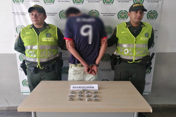 Continuando con el operativo constante contra la venta de estupefacientes, el departamento de Policía Tolima, se permite informar que siendo aproximadamente las 09:50 de la noche, por medio de las cámaras de la central de comunicaciones de la estación de Policía Espinal, logran observar a un sujeto sobre el sector de la tambora en actitud sospechosa y a su vez al parecer expendiendo sustancias alucinógenas, de inmediato se envían las unidades policiales a verificar el caso, llegando a la carrera 4 frente al Glorieta de la Tambora del Barrio Rondón, lugar donde mediante registro a persona se logró la captura en flagrancia de un hombre de 22 años, a quien mediante registro a personas se le hallaron en su poder 90.6 gramos de marihuana, equivalentes a 200 dosis aproximadamente.