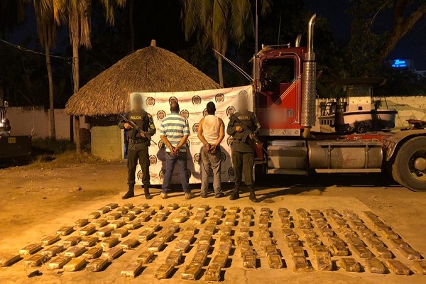 En desarrollo de la tercera fase del Plan Choque ‘Construyendo Seguridad’ y en el marco de la Ofensiva Nacional contra el delito, la Policía Nacional, a través de unidades adscritas a la seccional de Tránsito y Transporte, logró la captura de dos hombres que transportaban 143 kilogramos de clorhidrato de cocaína ocultos en sofisticada ‘caleta’ de un tractocamión.