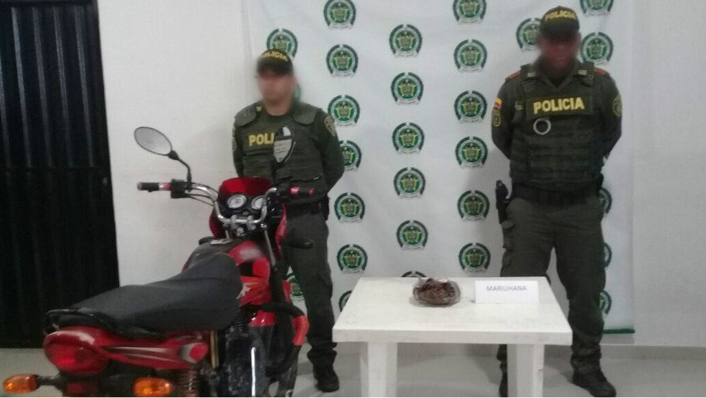 El caso se registró en el municipio de El Banco, cuando la patrulla del cuadrante perteneciente al Modelo Nacional de Vigilancia Comunitaria por Cuadrantes, realizaban actividades de patrullaje, registro y control a personas y vehículos cercanía del barrio La Paz, observan a dos personas que se encontraban al lado de una motocicleta color roja, quienes al notar la presencia policial emprendieron la huida hacia una zona enmontada dejando la motocicleta abandonada, al realizarle el registro a las partes de la motocicleta se halló debajo del cojín una bolsa la cual contenía envueltos en pequeñas dosis de sustancia vegetal con las mismas características de la marihuana listas para su distribución.