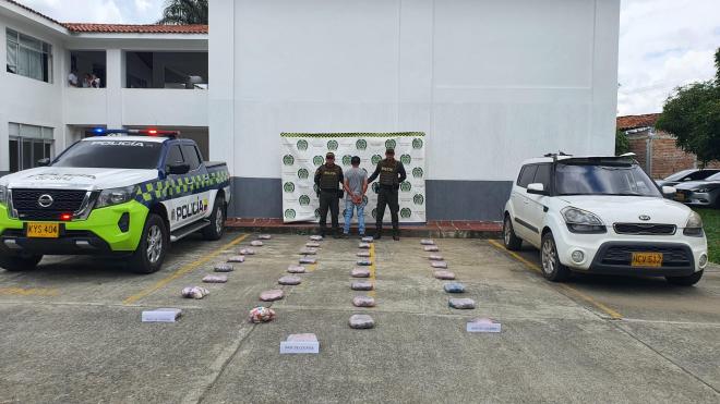En cumplimiento a la estrategia contra la disminución del consumo y tráfico de drogas ilícitas, unidades que integran el nuevo modelo de servicio de policía enfocado en las personas y en el territorio, adscritas al distrito de policía Roldanillo, mediante planes preventivos realizados con unidades de tránsito municipal, tales como registro a personas, registro a vehículos y verificación de documentos, se logra la captura de dos ciudadanos de 66 años de edad y 59 años de edad, los cuales se movilizan en 2 vehículos quienes transportaban en su interior más de 108 kilogramos de una sustancia que por su olor y características se asemejan a la base de coca.