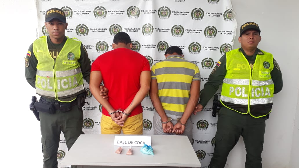Los dos presuntos expendedores fueron capturados en el barrio Miraflores del municipio de Magangué por integrantes del Modelo Nacional de Vigilancia Comunitaria por Cuadrantes, cuando pretendían comercializar más de 50 dosis de base de coca.