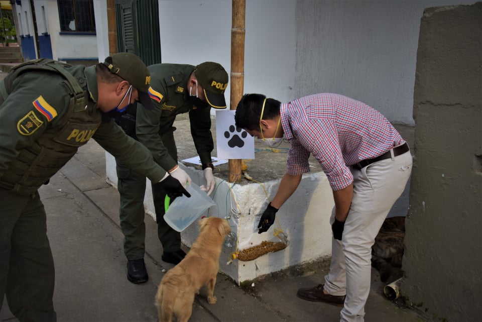 El marco de la campaña “Somos Uno, Somos Todos” contra el COVID19, uniformados de la estación de Policía del municipio de Isnos junto con el personero municipal y ciudadanos amantes de los animales de compañía, obtuvieron alimento para los caninos en condición de calle.
