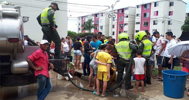 Gracias a la buena labor realizada por la Policía Nacional de los colombianos, y su personal adscrito al Escuadrón Móvil Antidisturbios, (ESMAD) y personal de Prevención y Educación Ciudadana (Preci), durante el día ayer y todo el día se llevaron carrotanques para dotar de agua potable a este sector de la ciudad de Montería, para hacer buen uso de la misma dada la vital existencia de este en la cotidianidad y salud humana.